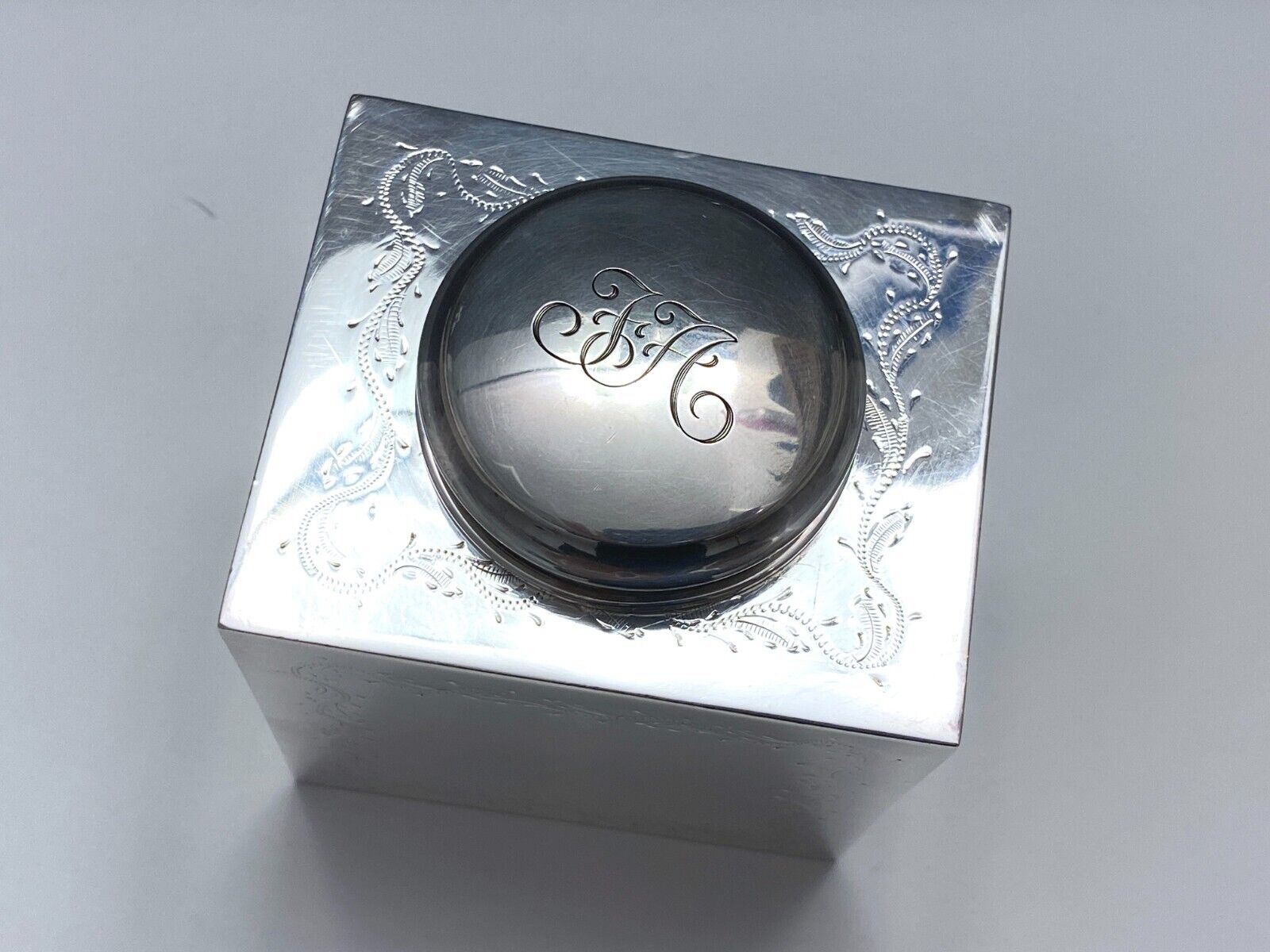 A fabulous sterling silver tea caddy, or cube shape box by Tiffany & Co.