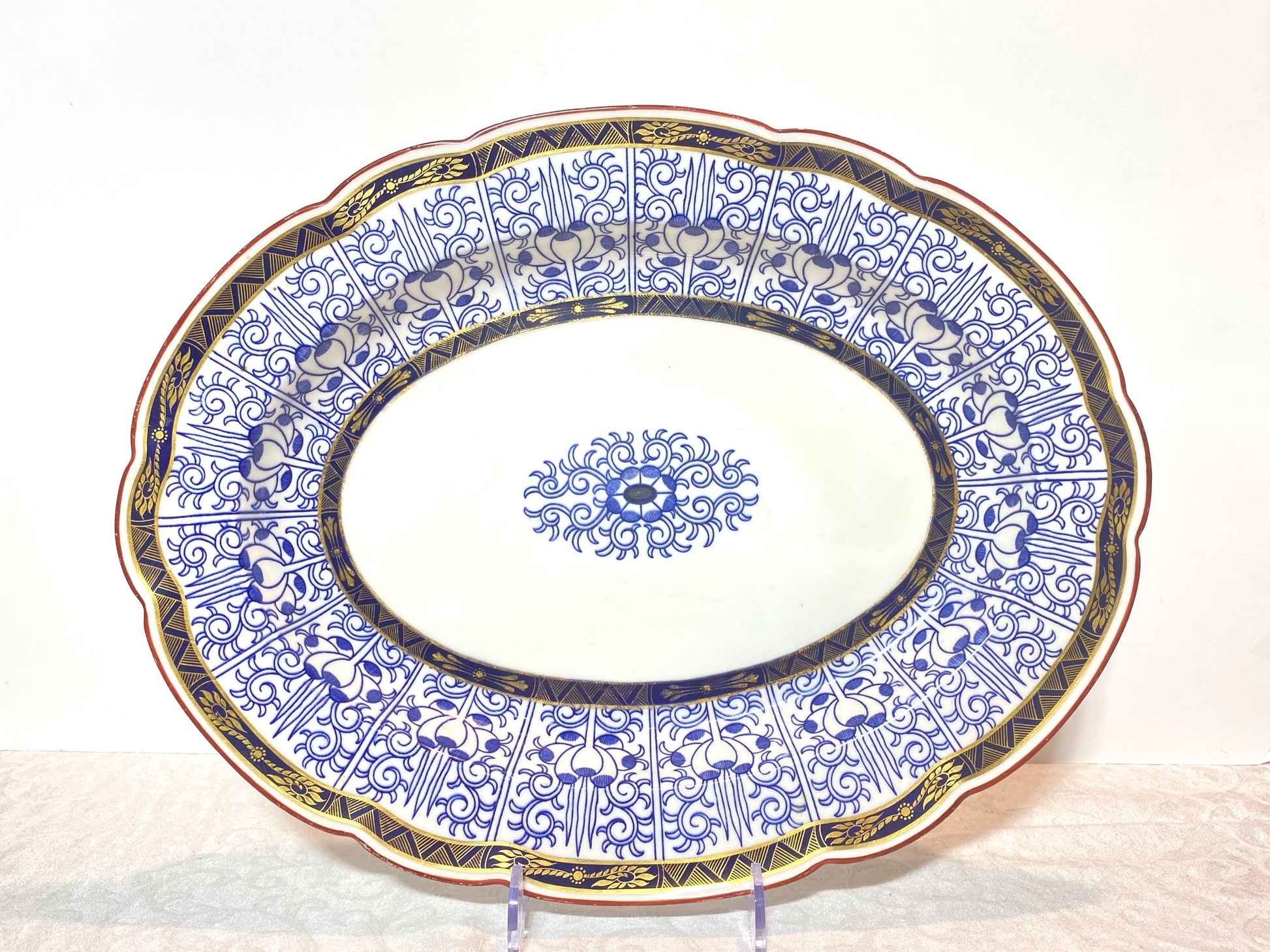Worcester English Porcelain Blue and White "Royal Lily " oval serving platter, large, 16'', rare scalloped edges,Circa 1906, gorgeous