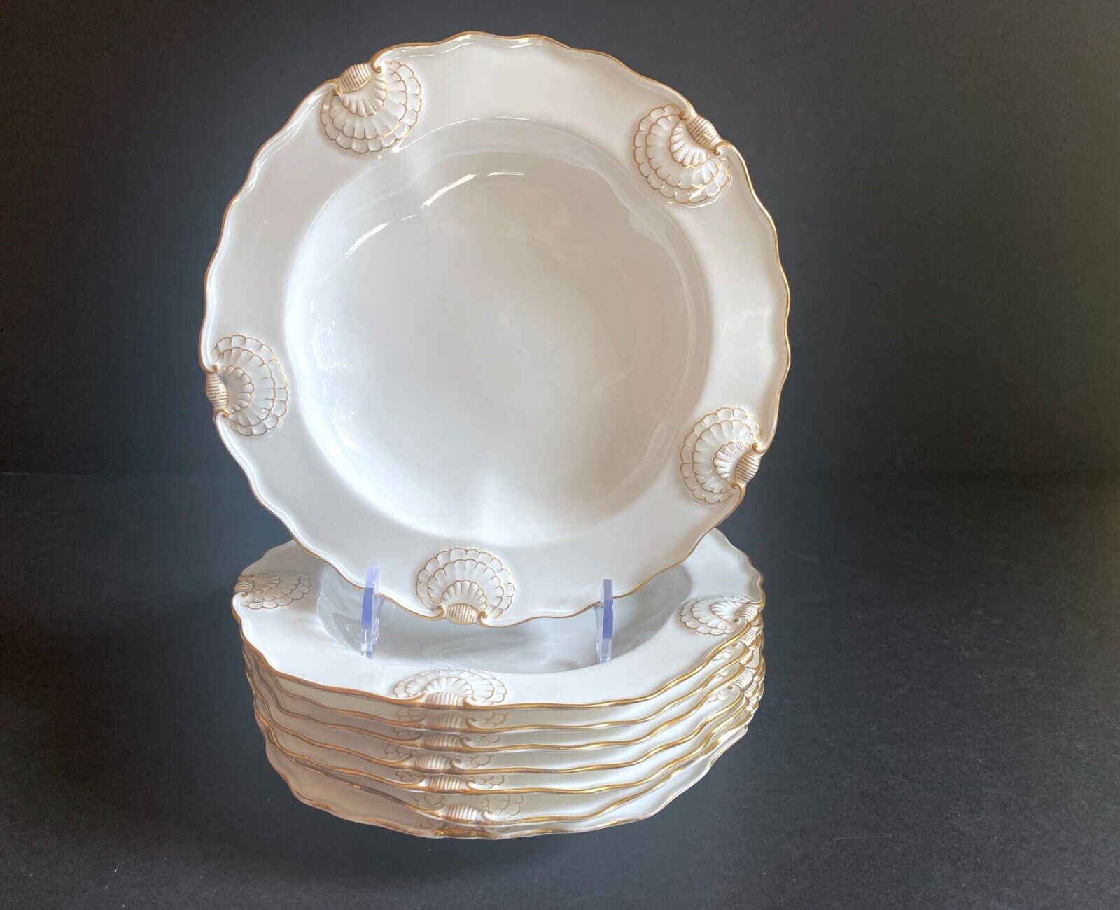 This listing is for a set of 8 Tiffany & Co New York collector Plates by Royal Worcester, bone china, raised shell design, and gold rim on shiny white background, 9 1/8'', circa 1912. very rare, exquisite