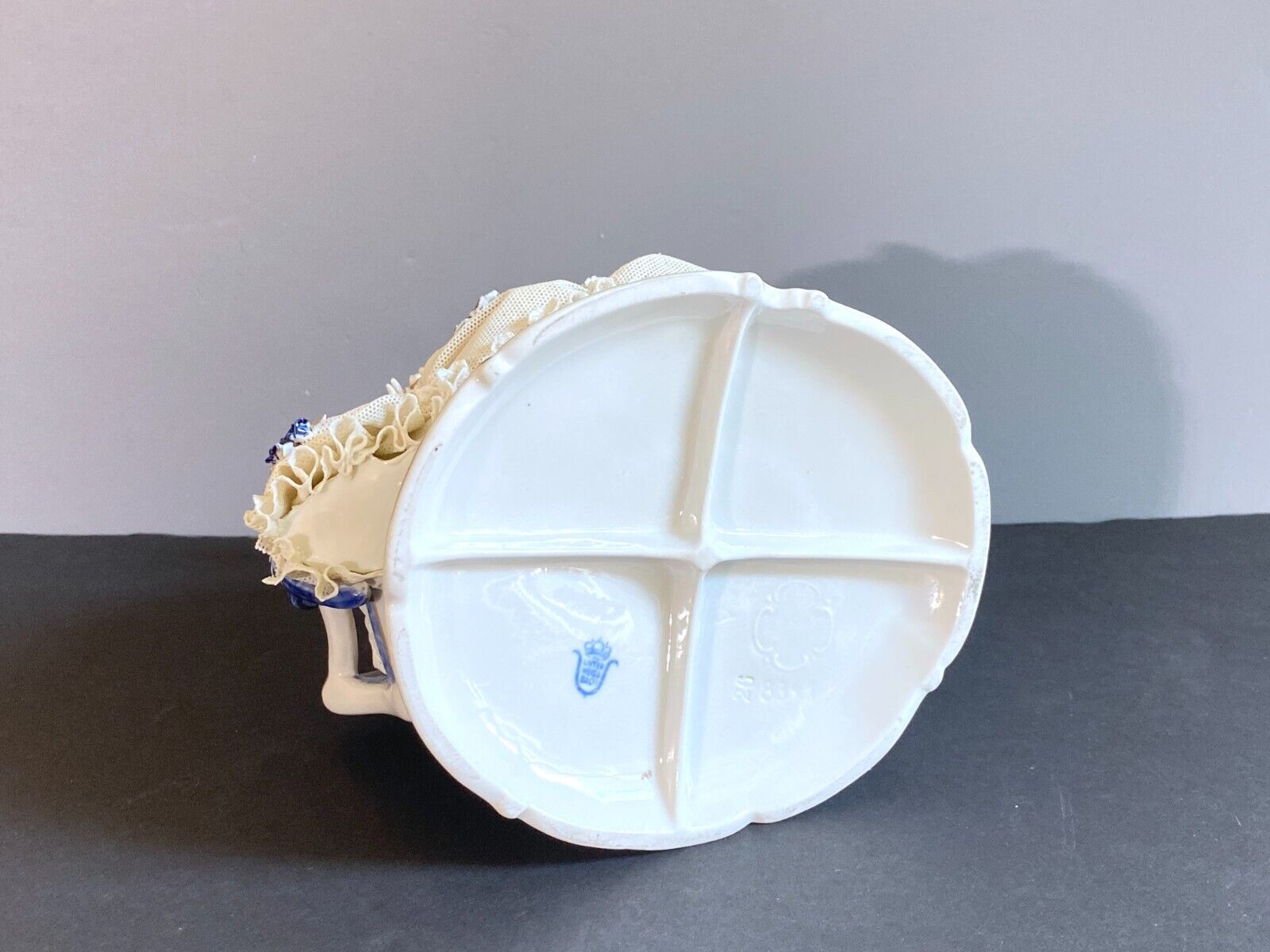 Germany Unterweissbach Porcelain Figural lady in ball gown with lace skirt, FAB