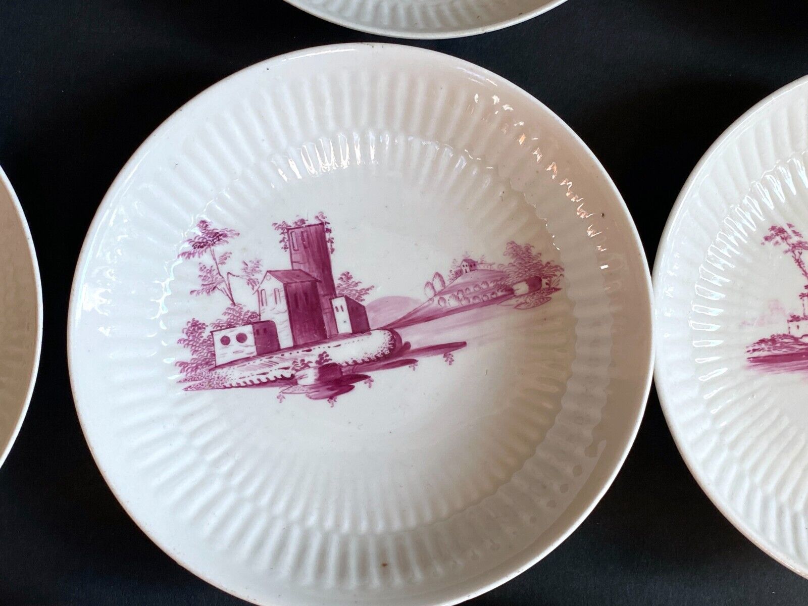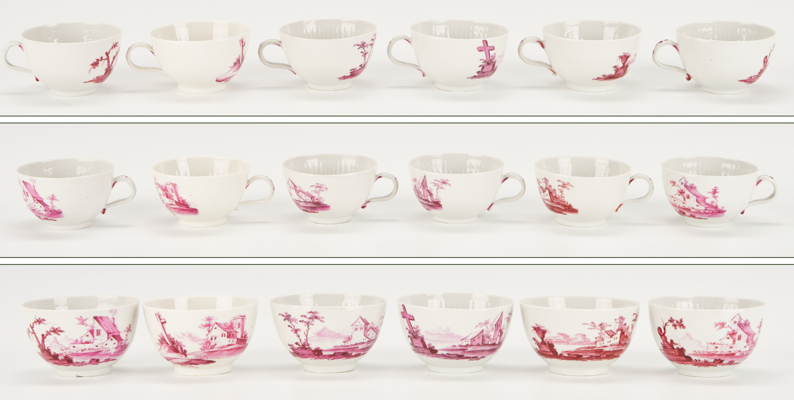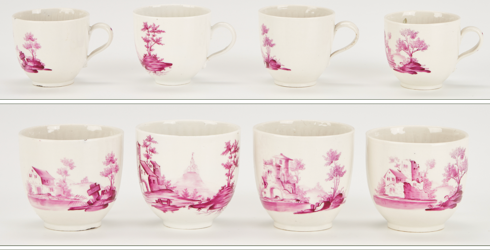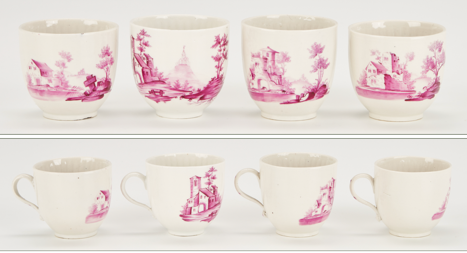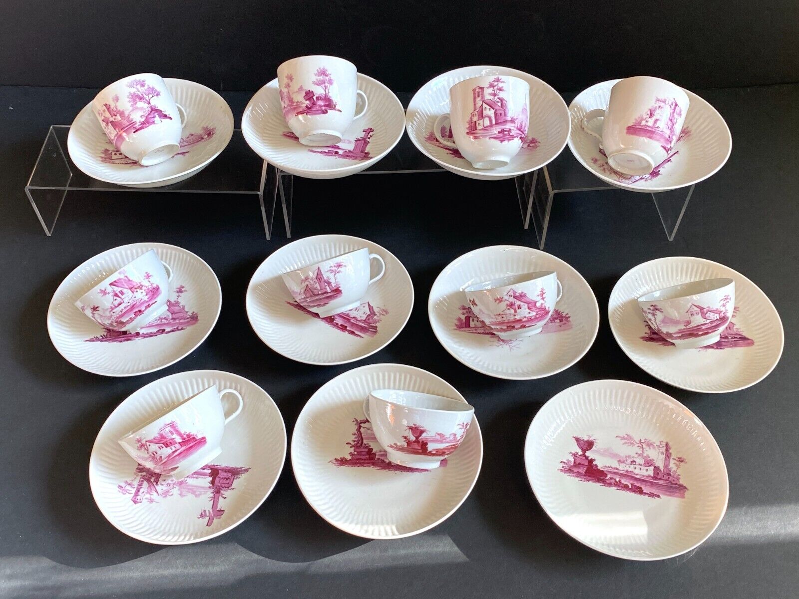 18th C. German Gotha Thuringia porcelain puce country scenes Tea/coffee service