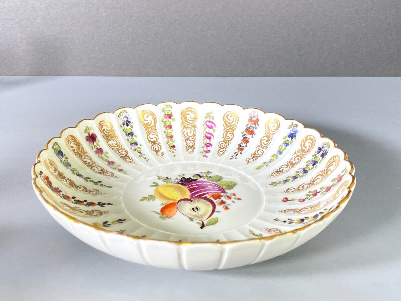2 x MEISSEN serving bowl, polychrome floral, fruit painting, gilding, 19century