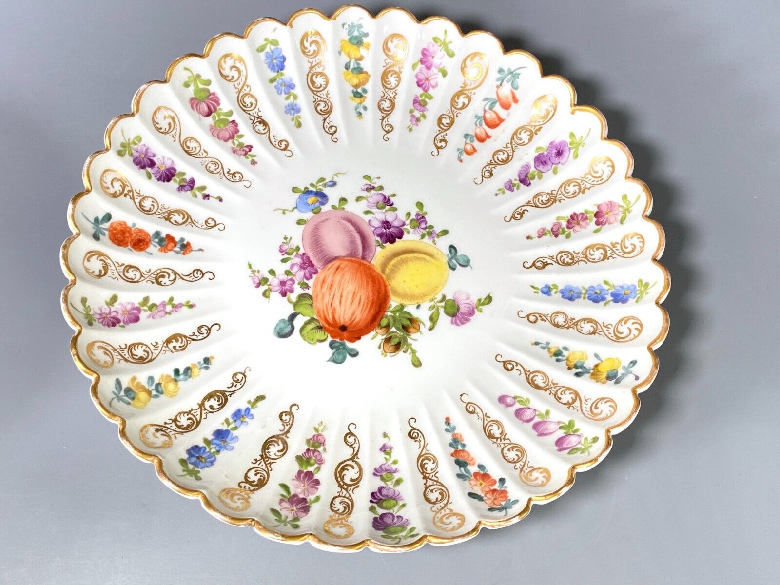 2 x MEISSEN serving bowl, polychrome floral, fruit painting, gilding, 19century
