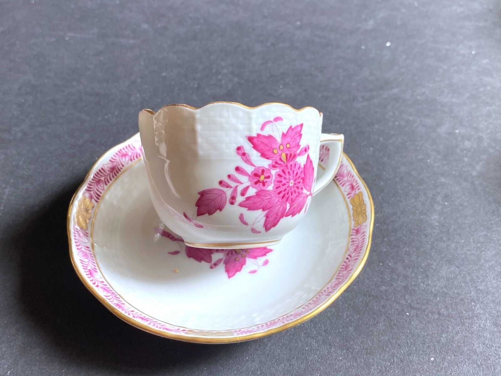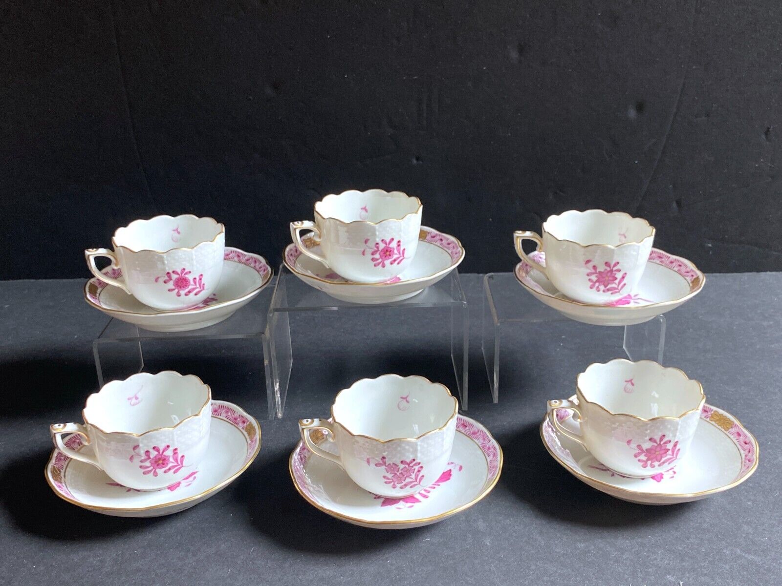 6 sets of Herend Hungary Porcelain "Chinese Bouquet " Raspberry (AP) coffee cups and saucers 6 persons, excellent 24k gold accents