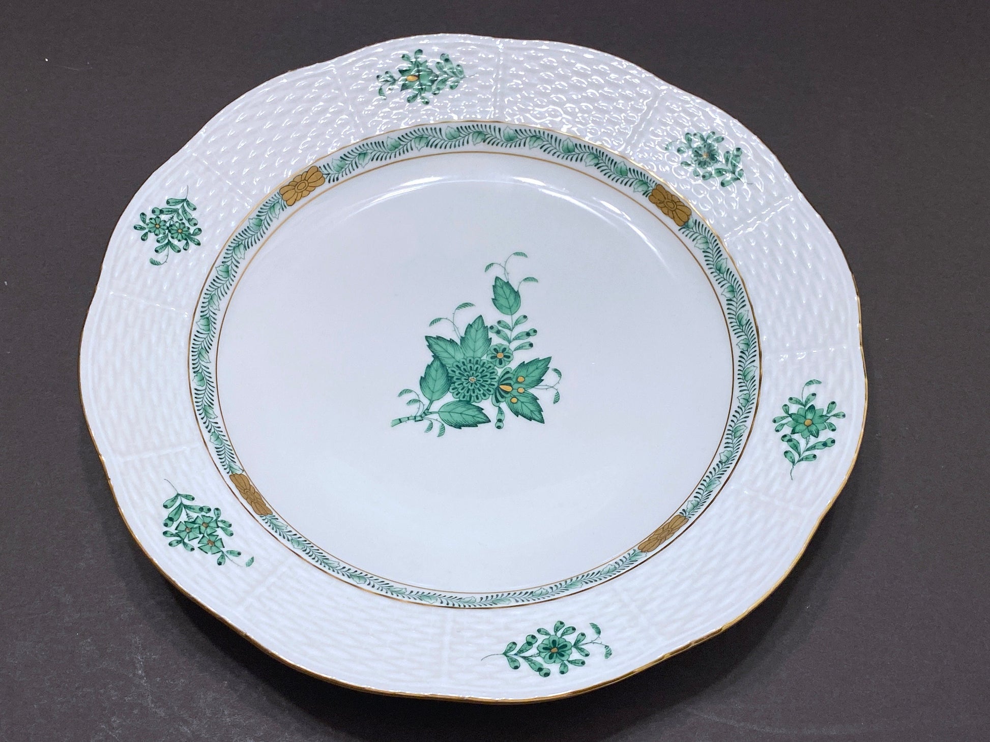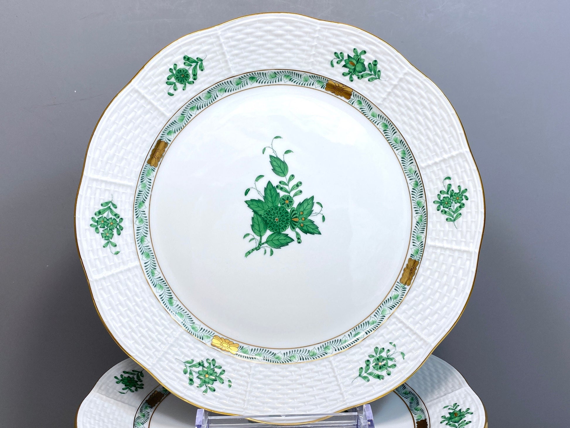 A pair of Herend Chinese Bouquet Apponyi Green dinner plate 10'', 524/AV, mint