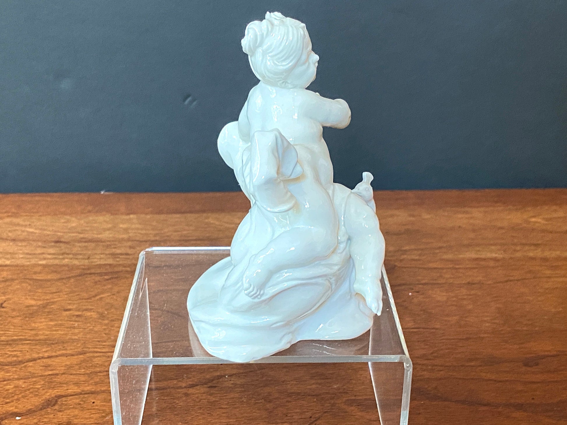 Antique 18th C Nymphenburg Putto Figurine, Juno with Peacock after Franz Anton Bustelli.