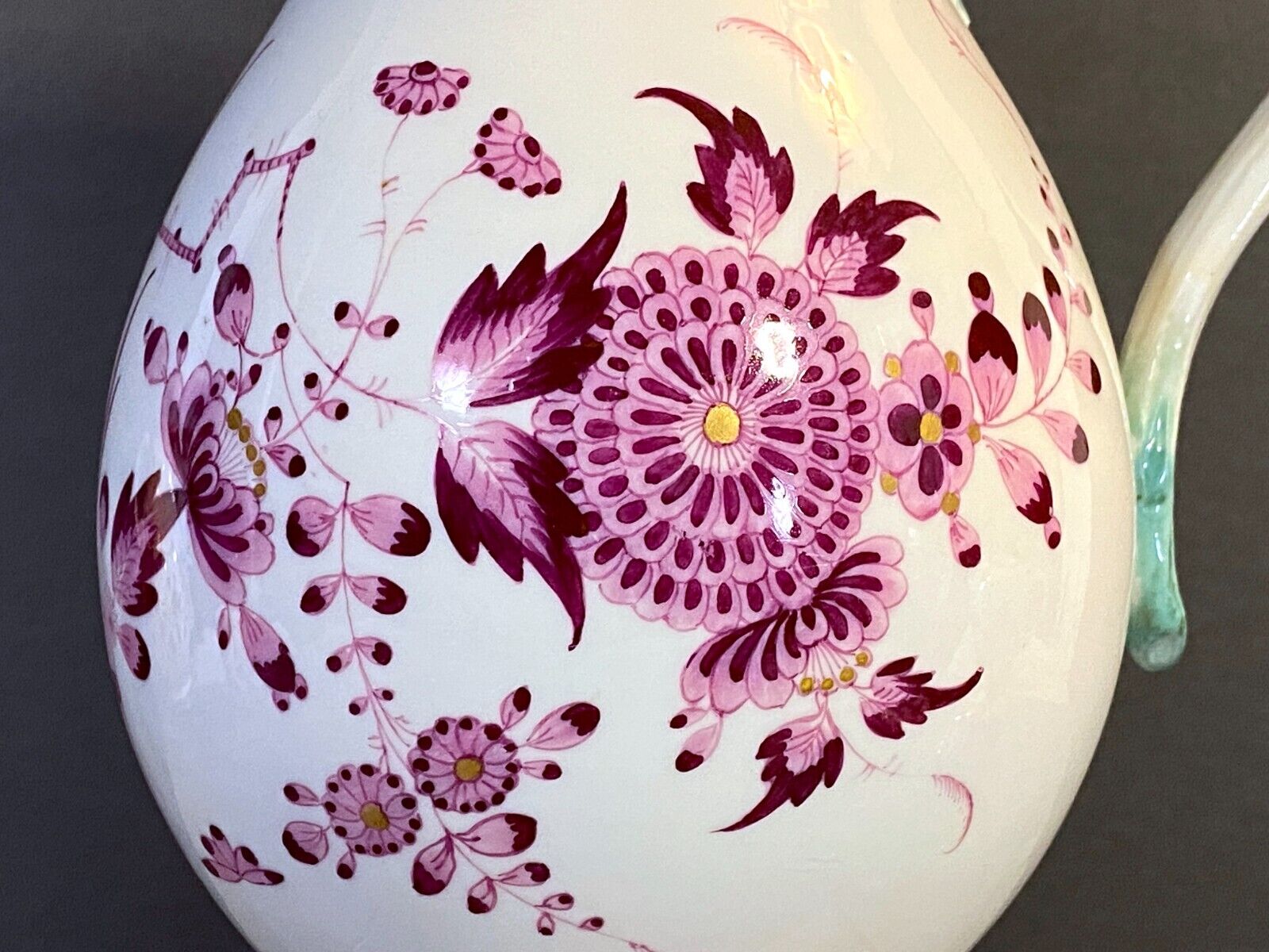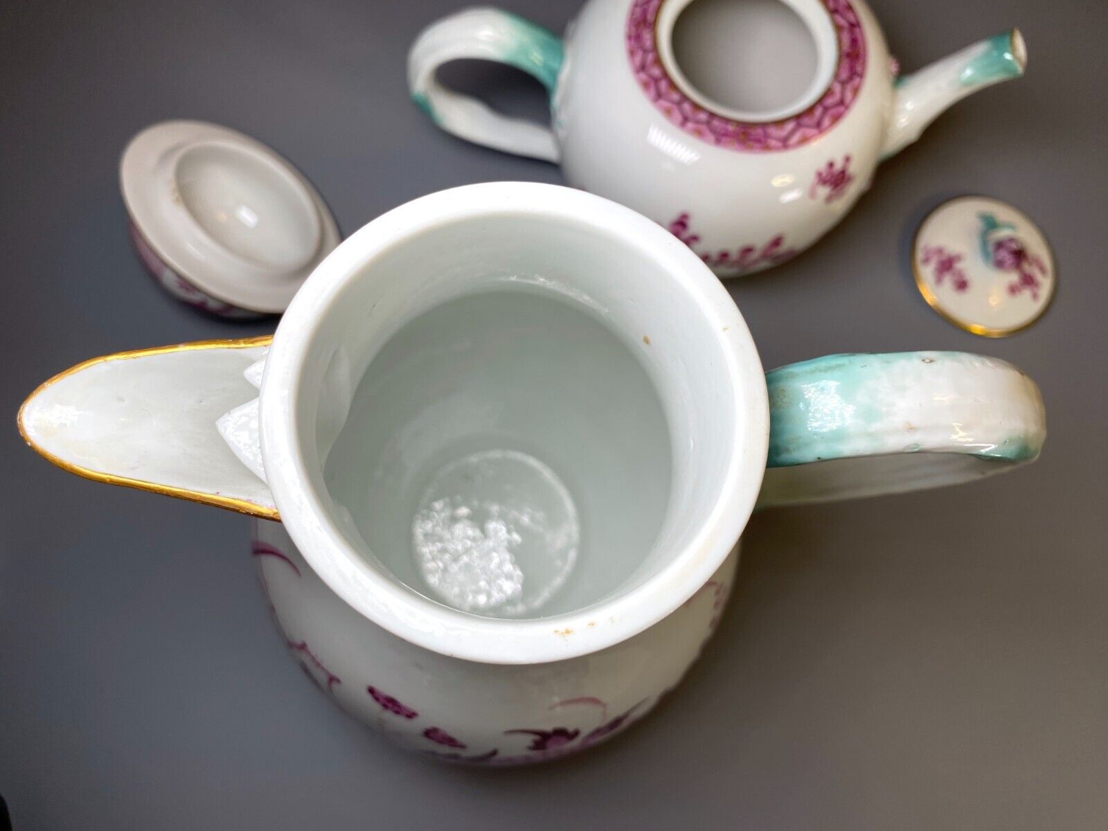ca.1775 Meissen handpainted purple floral coffee/ tea set, turquoise handle,rare