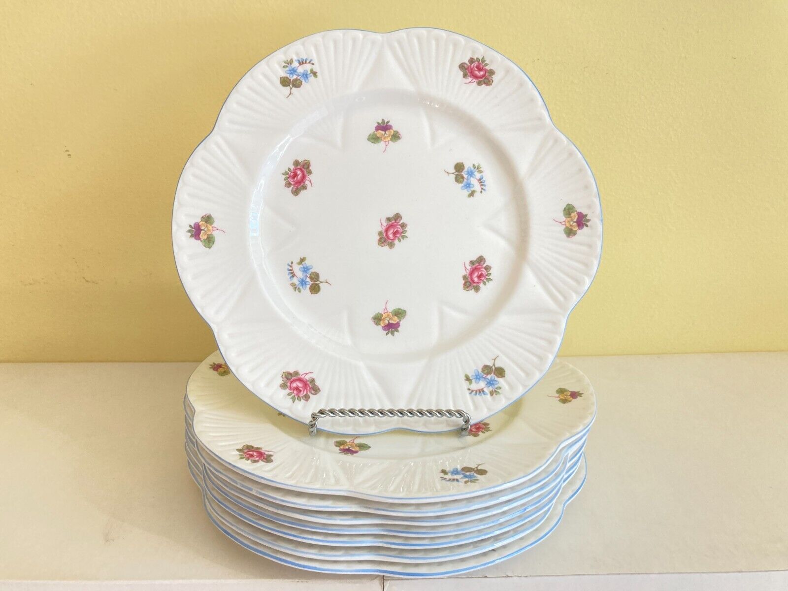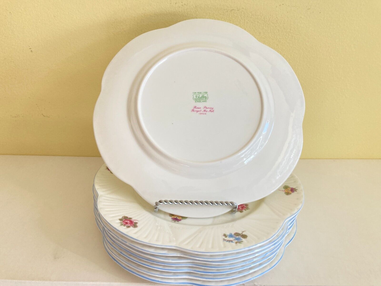 - 8 x Dainty shape plates, 8 3/4'' wide. marked with "Rose Pansy, Forget-Me-Not " and pattern No. 13424 underneath. No blue trim