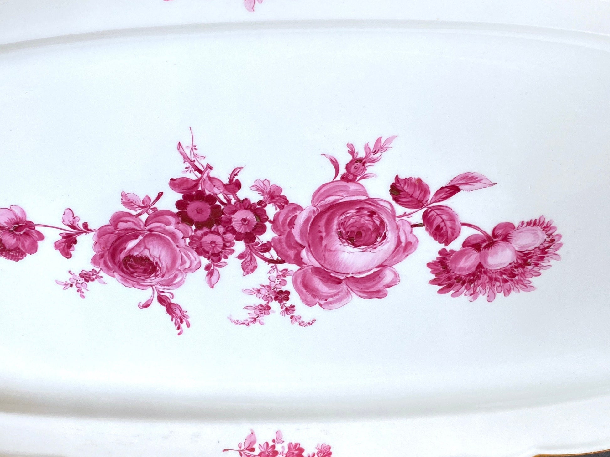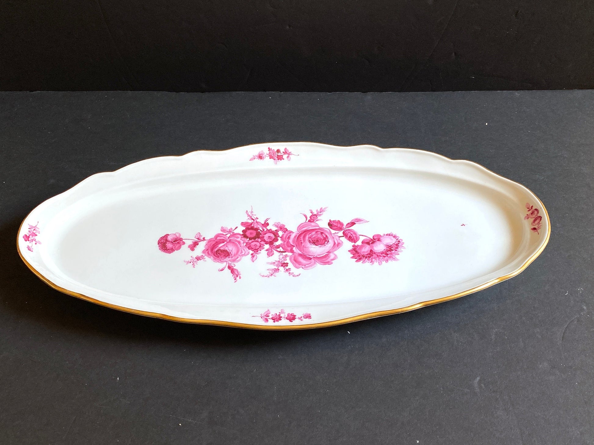 Gorgeous MEISSEN "flower boutique " Purple fish plate, gold rim, 21 inches, 1st choice, excellent