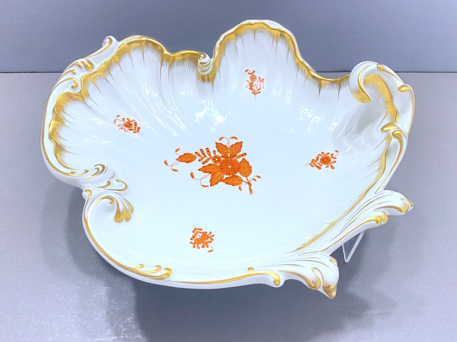 Herend Chinese Bouquet Rust (Apponyi Orange) LARGE Rococo /Wave/leaf dish, NICE