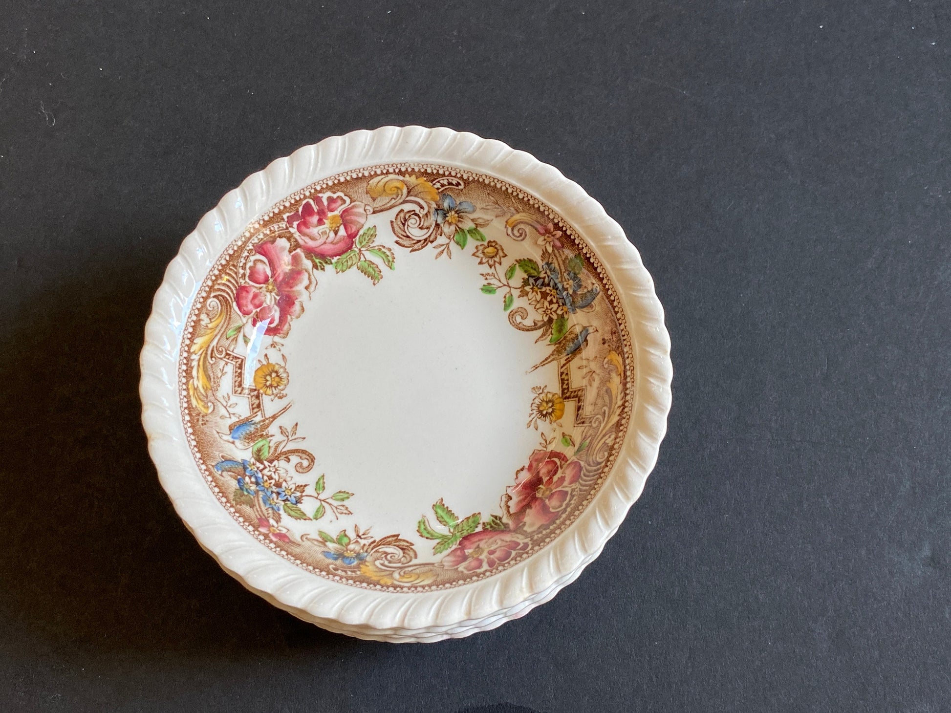 JOHNSON BROTHERS England Ironstone Devonshire pattern Fruit/Dessert (Sauce) Bowls, set of 7,brown multicolor, ca. 1940s excellent condition, comprising: