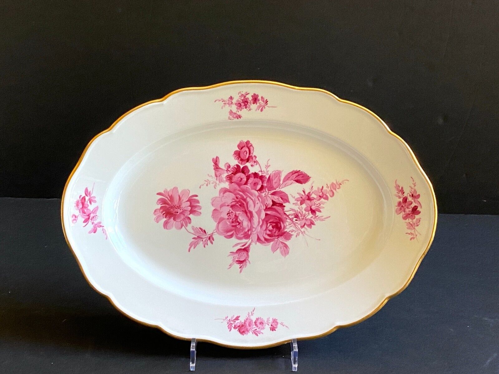 Gorgeous MEISSEN "flower boutique " Purple oval plate, gold rim,1st choice, excellent, very rare