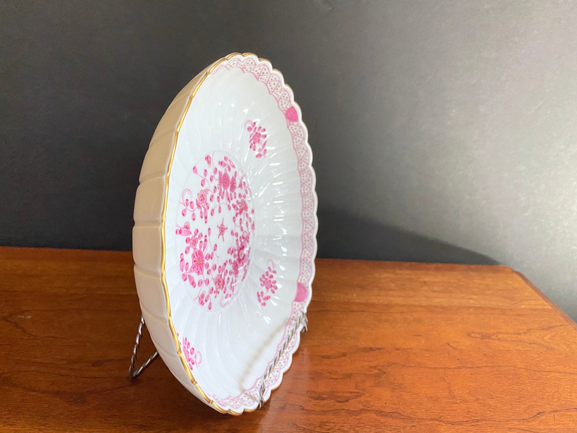 A magnificent MEISSEN " Pink India flower" serving platter/cake plate, featuring a camaieu painting with gold accent, 20 century, with underglaze blue crossed swords, extremely beautiful!