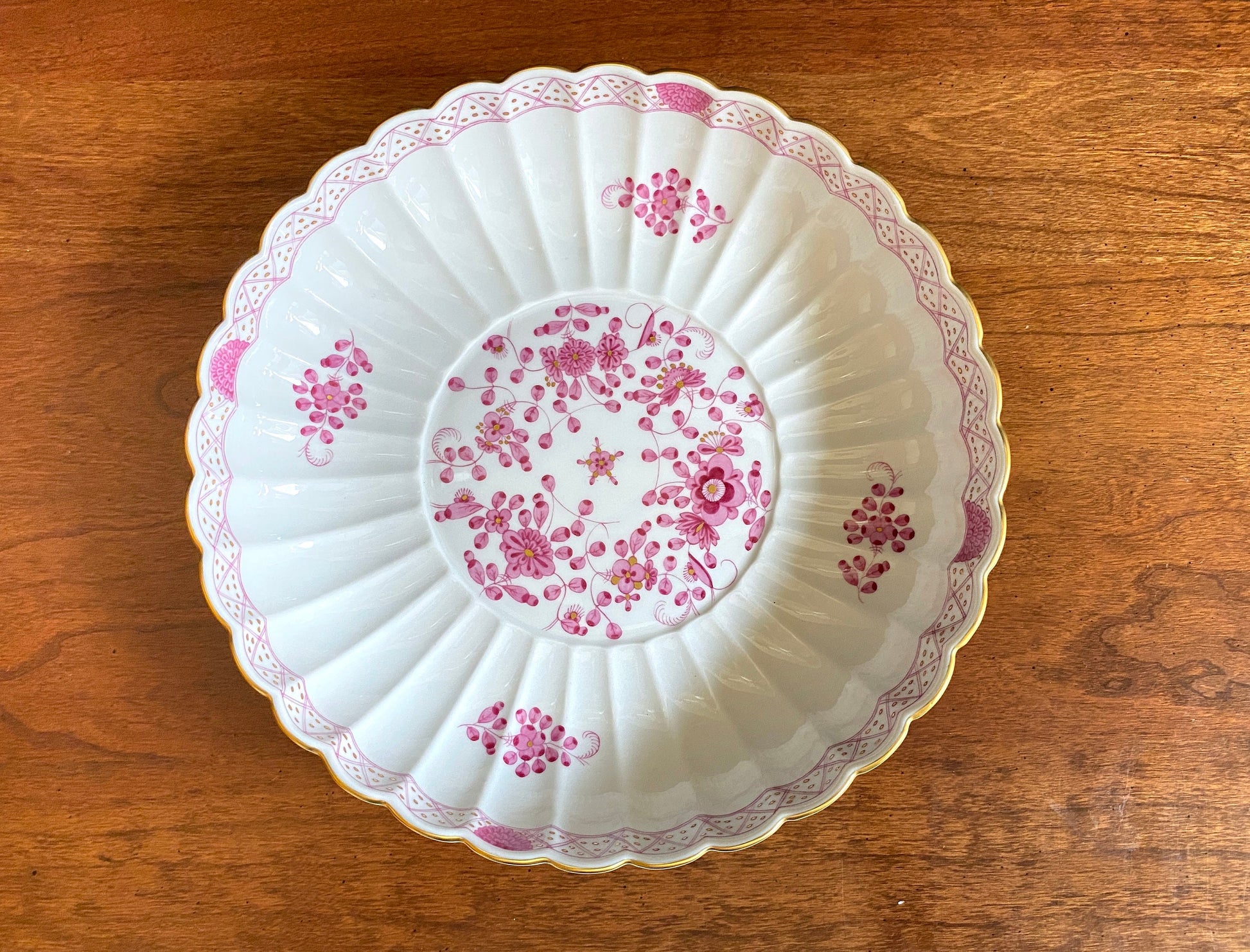 MEISSEN "Indian flower" pink serving dish, camaieu painting with gold accent, exquisite, 1st quallity