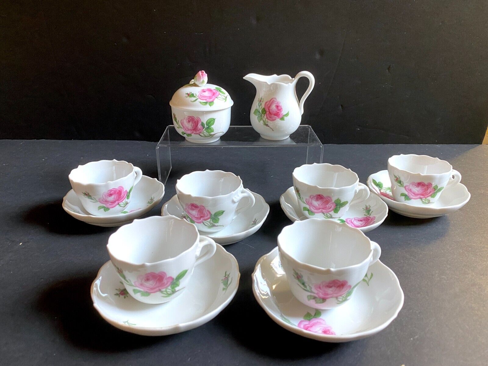 MEISSEN PINK ROSE small Coffee set, coffee cups, sugar bowl,creamer, 1st quality