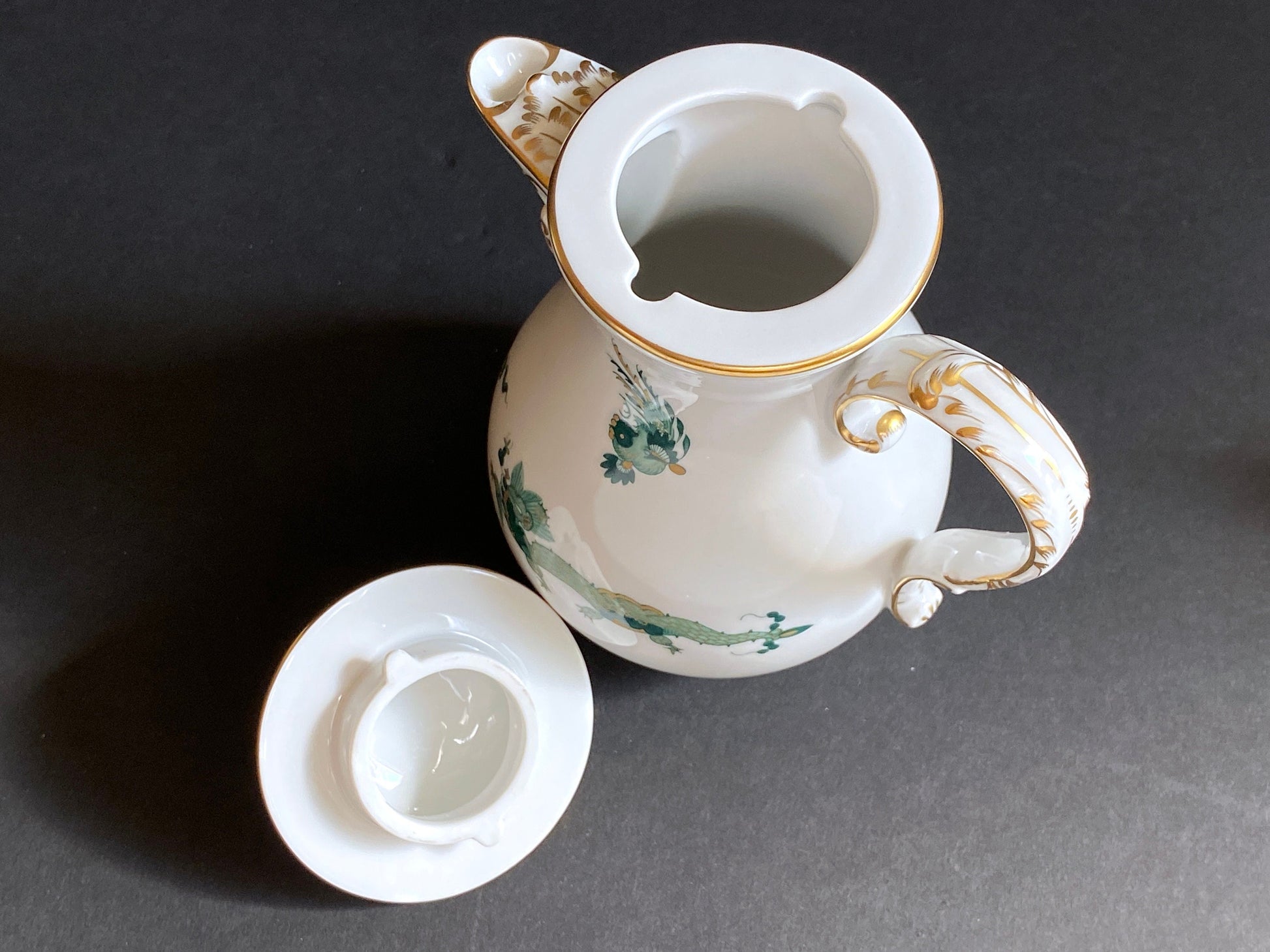 Meissen Reicher Court dragon (Green) & Phoenix birds small /demitasse coffee pot, creamer, lidded sugar bowl, gold, 1st quality, exquisite