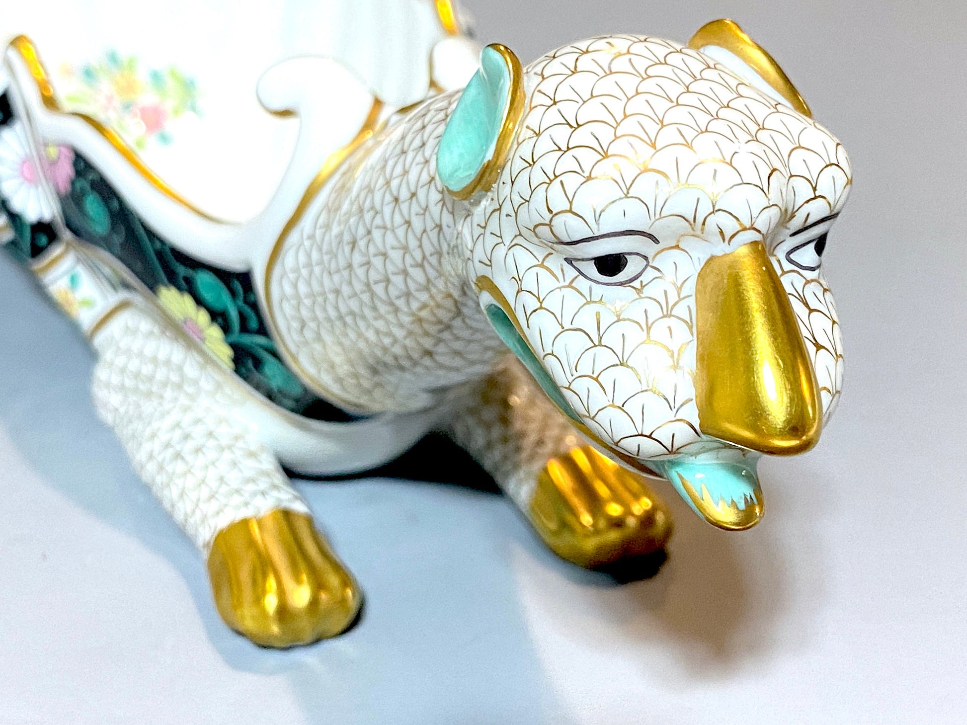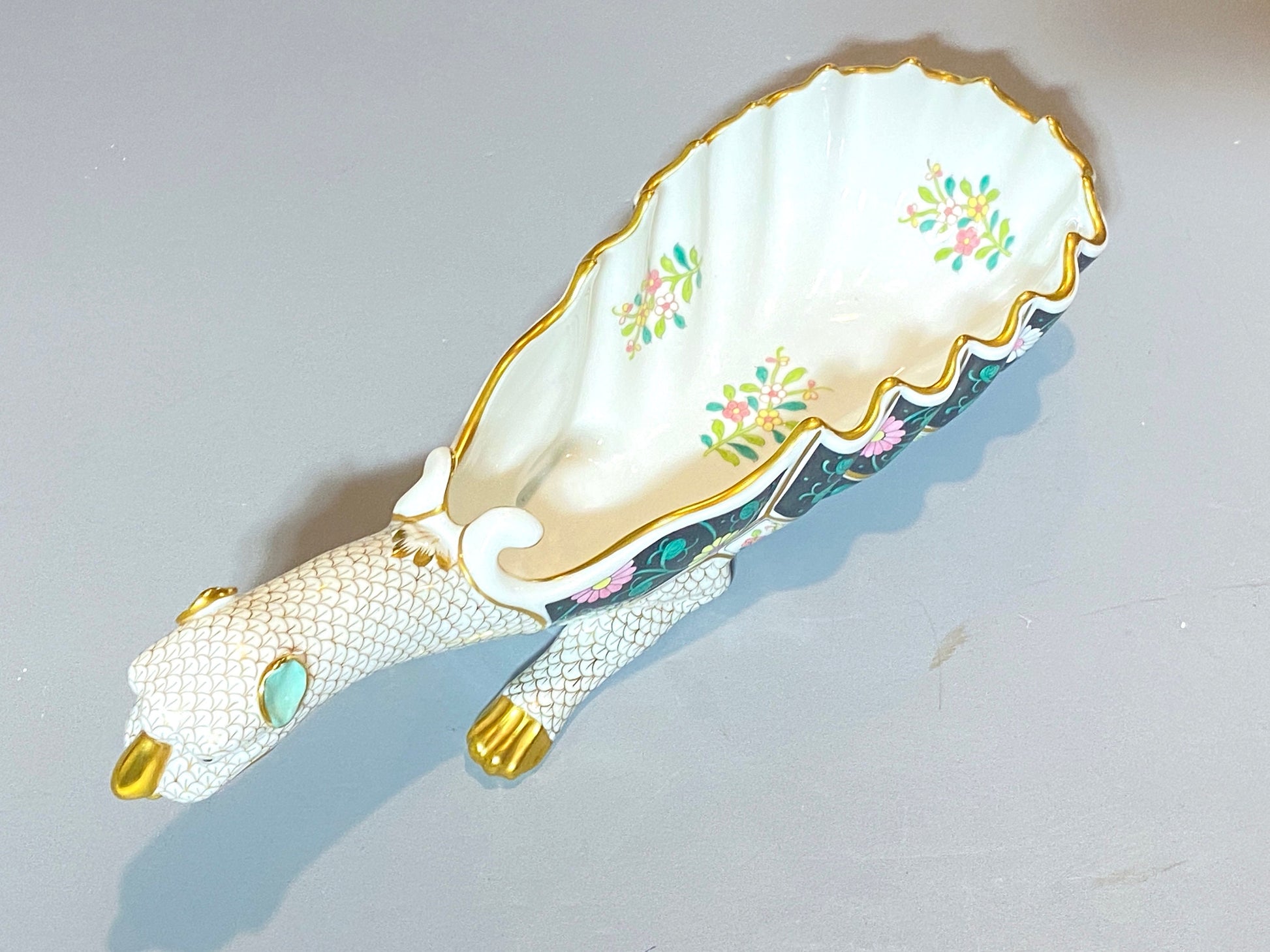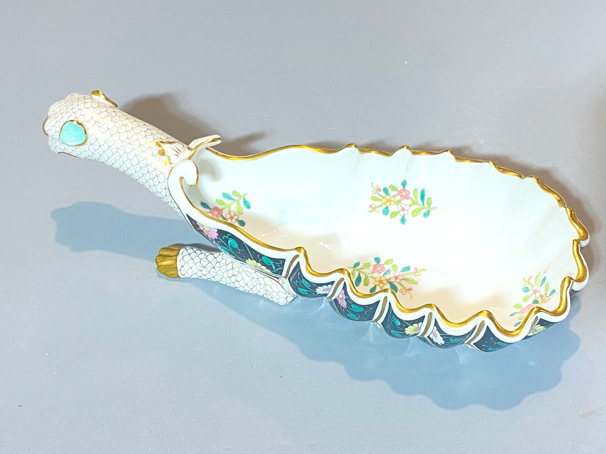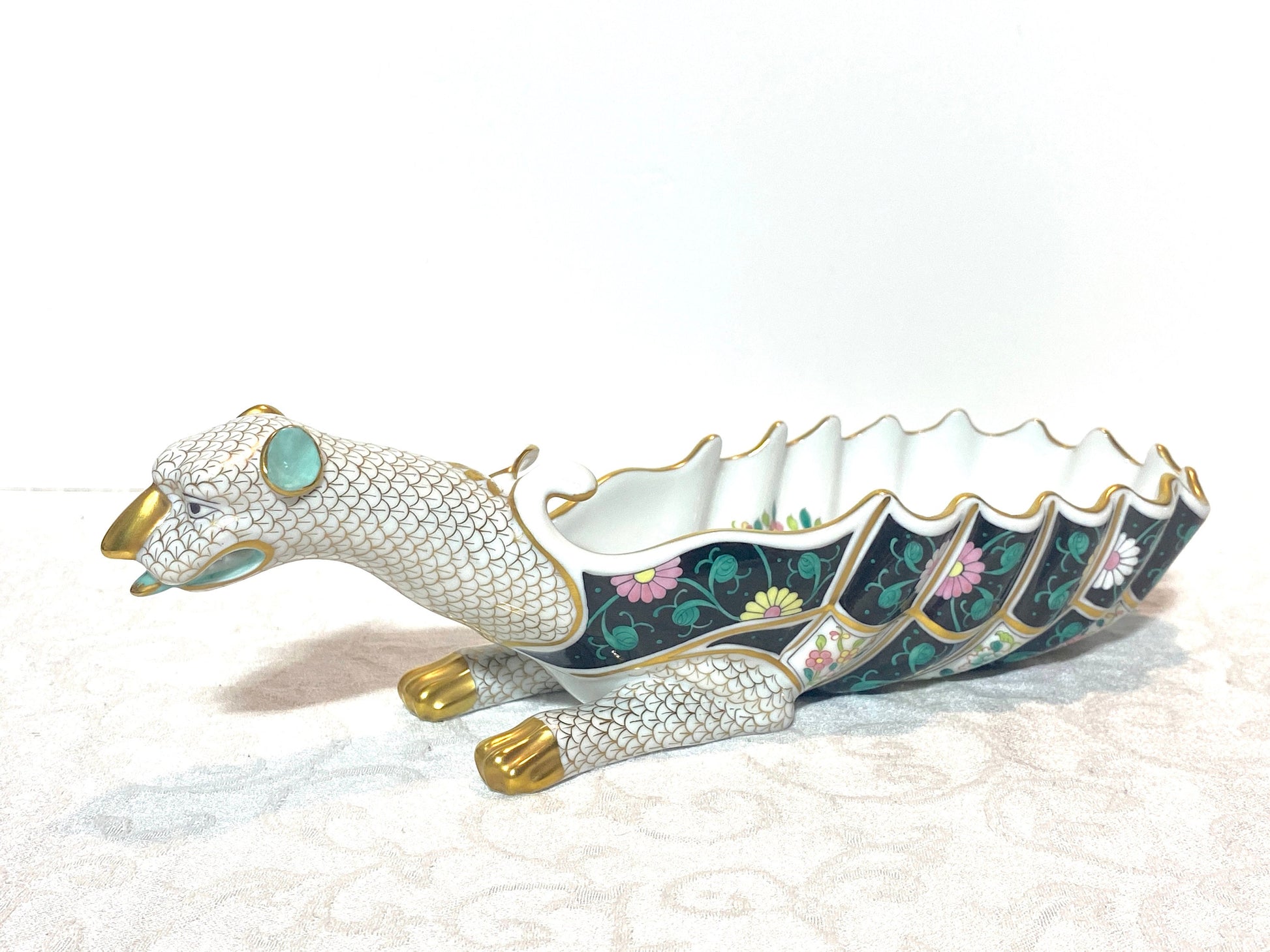 Herend Porcelain signed Black Dynasty Handpainted,24k Dragon Dish, 11'', 7760/SN
