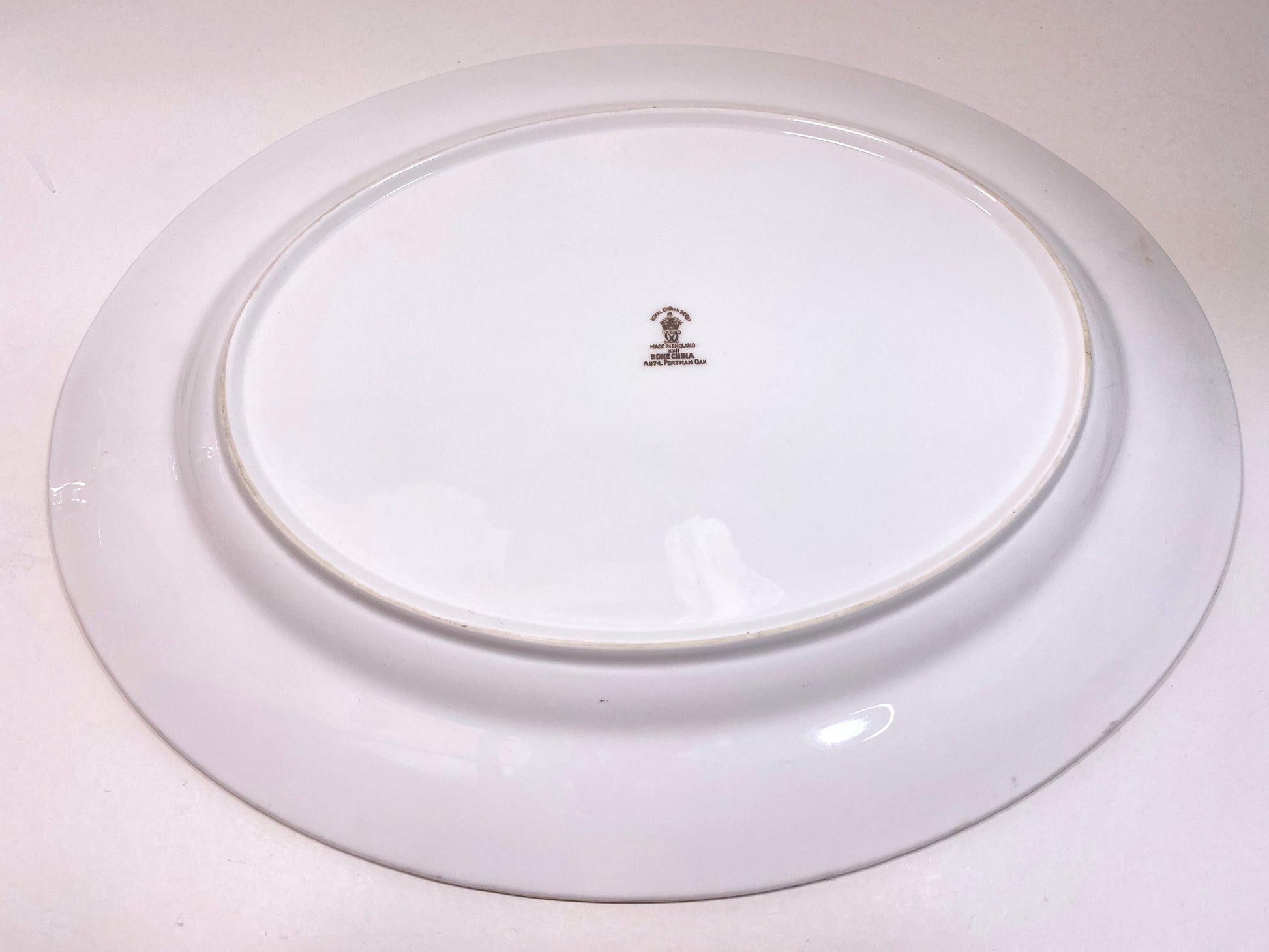 Royal Crown Derby "Portman Oak" pattern oval platter, gold accent, ca.1940, bone china, made in England