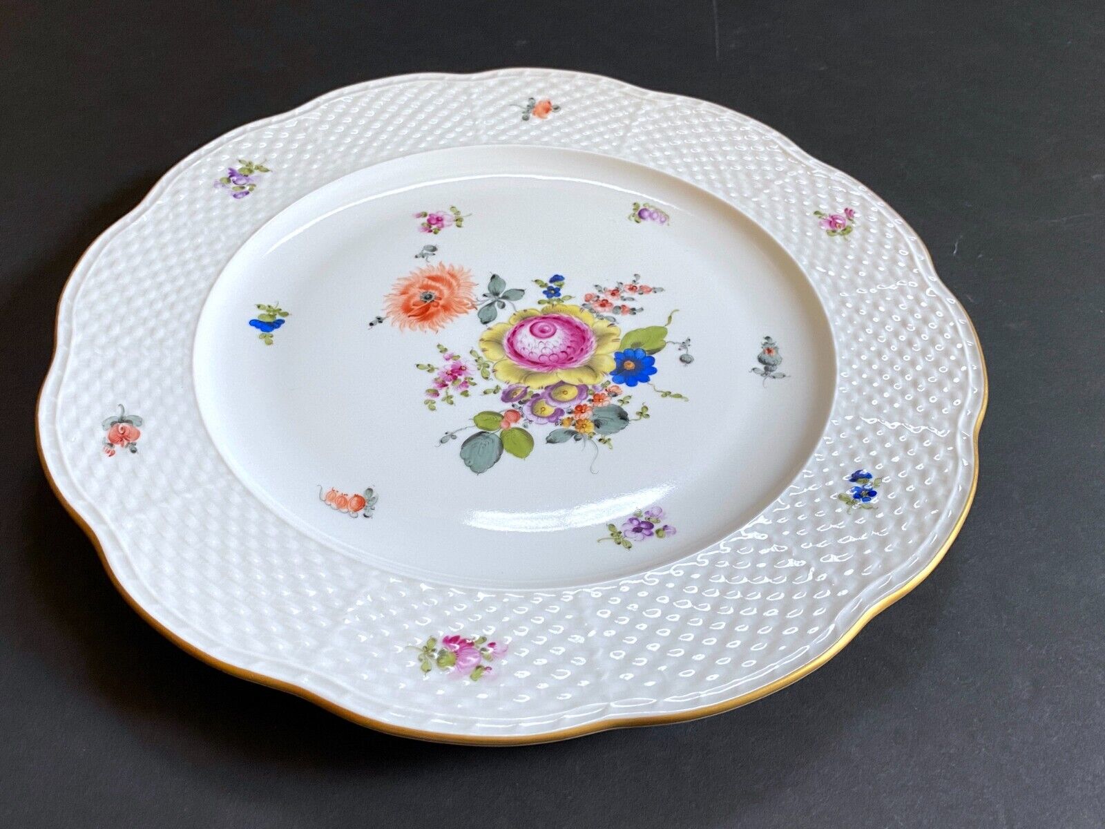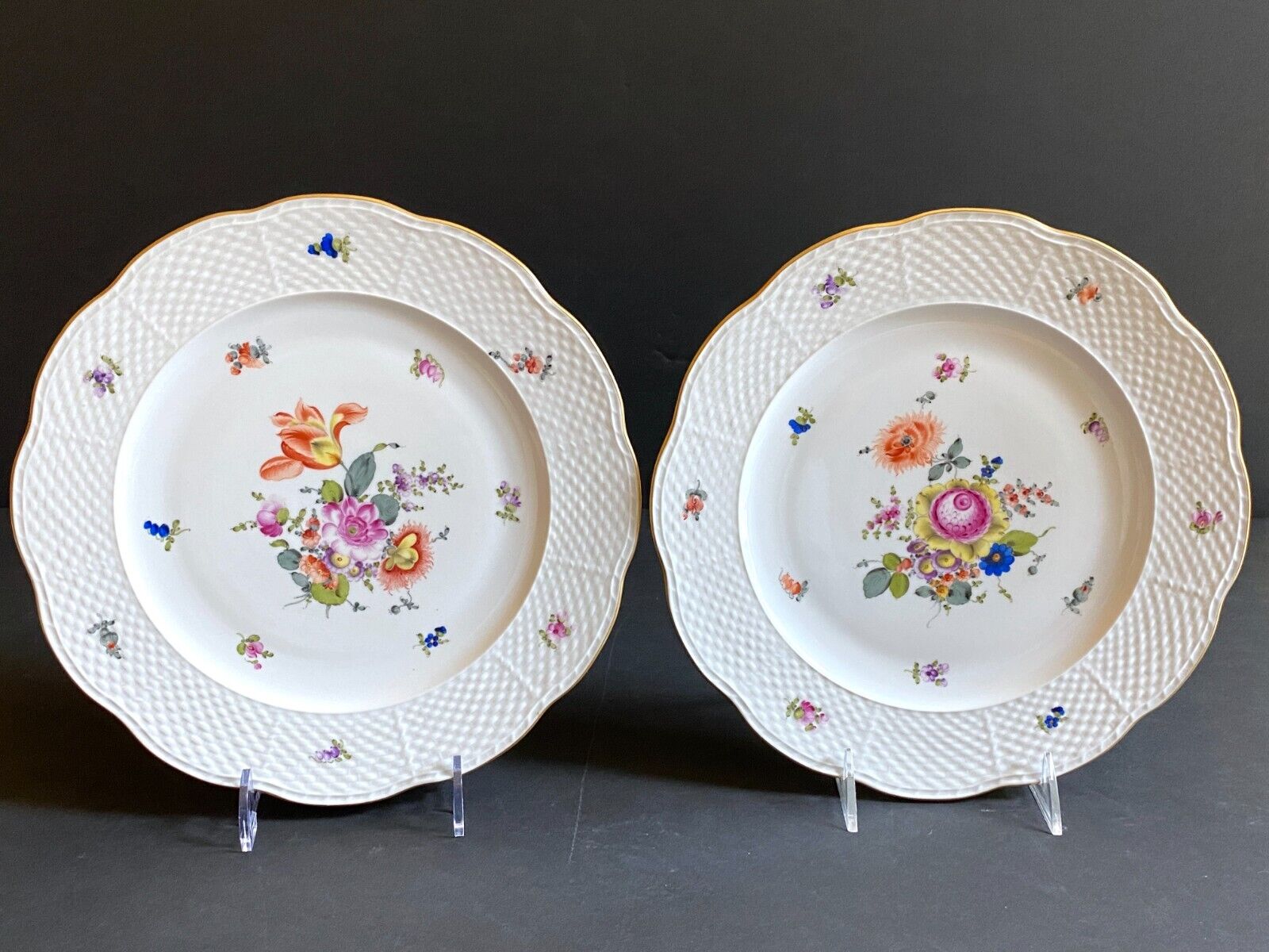 Set 4 Herend "Bouquet of Flowers" (BHR 527) dinner plates ,hand-painted flower