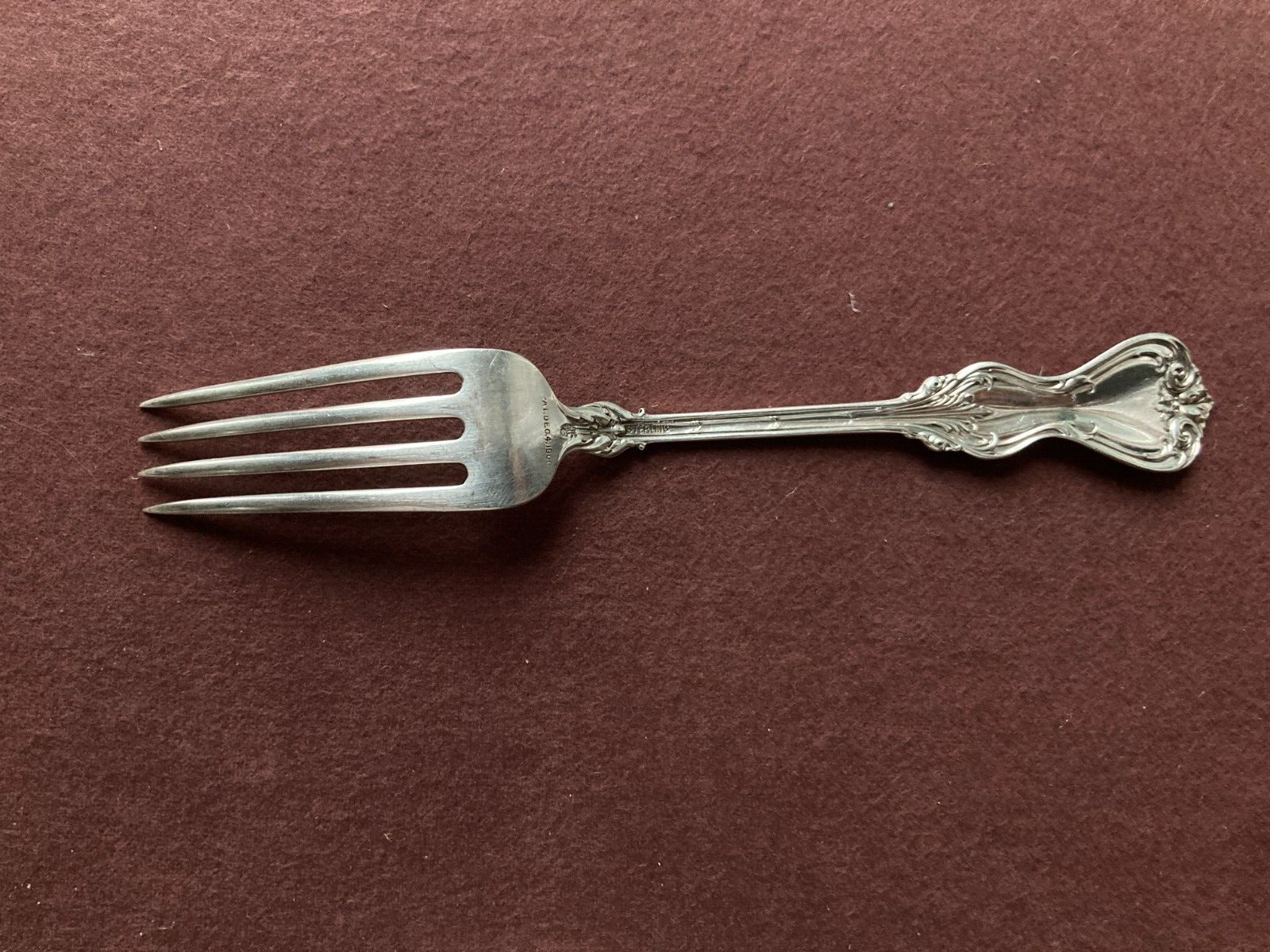 ca. 1900 Whiting "DUKE OF YORK'' luncheon fork, 6 3/4'' L, monogramed, superb condition, Heirloom!